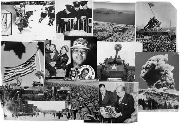 Masterful collection of over 1,300 images from the San Francisco Examiner Archive, average 1950s. Includes: local S.F. material withmany aerial views, crime, sports (hockey, baseball with Tony Lazzeri,basketball with Globetrotters), religion, military, Ballet, 1934longshoremen strikes (panoramas), Hawaii becomes a state, political, firemen, King Edward abdicates, Stalin, floods, ships and yachts,award winning photos, Korean War and more.