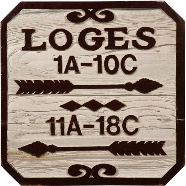 Lot # 215: Cleveland Municipal Stadium Carved Loges Sign
