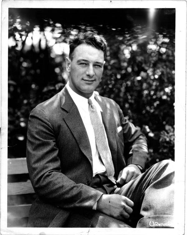 Lou Gehrig in impressionistic portrait (with wild hair) from American League Service Bureau series. “Underwood” photo logo at bottom right. Dated July 30, 1930. 8x10”, EX-MT.