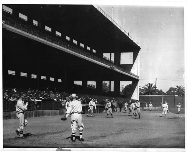 One year shy of a World Series title, this 1932 New York Giants team trains at Wrigley Field in Los Angeles. Two (2) photos dated on verso Feb 1932. 8x10”, EX+.