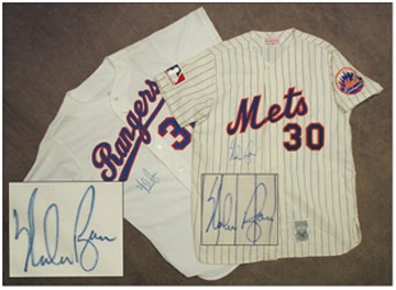 After Cy Young's 500+ wins, the Texas fireballer's strike out record is probably the most untouchable in pitching. Remember him well with these perfect replicas of the shirts he wore in his early years with the Mets, and later with the Rangers. Each is signed in flawless blue sharpie.