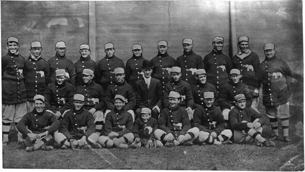 1910 team photograph of the Philadelphia Athletics - the year of their first World Series title. Original typed tissue caption on verso. 10 ? x 6”, EX.
