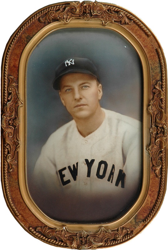 Affectionate, hand-tinted portrait of right-handed pitcher and All Star Monte Pearson as he appeared when he played for the New York Yankees (1936 - 1940). This studio-styled photo was the type often presented to the players or to their families. Measures 12 ? x 19” in its ornate frame.