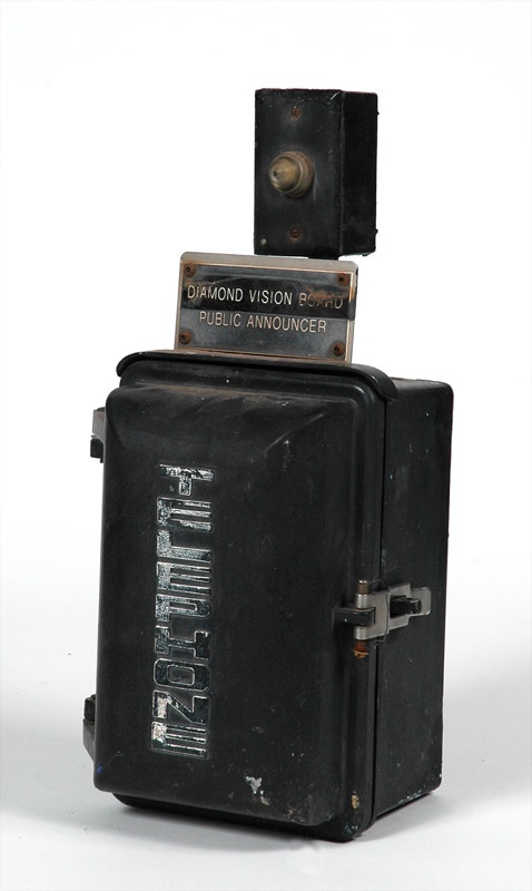 This was the phone that went directly to the public address announcer. Plaque reads "Diamond Vision Board Public Announcer." A light at the top allows people to see when the phone is ringing. 20 x 8 x 9''.