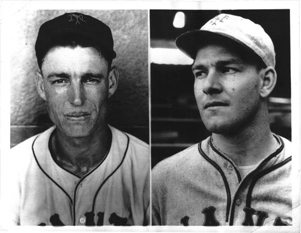 Mel Ott and Byrne James of the 1933 World Championship Team. Caption sheet on the back dated 9/9/33. 6.5 x 8.5''. Excellent.