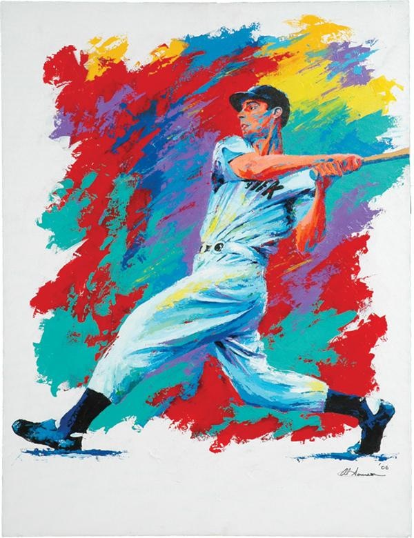 As only artist Al Sorenson can capture, Joe DiMaggio’s swing is thing to see - dramatic, powerful and clipper graceful. This Neiman-styled acrylic on canvas originals is signed and dated (’06) by Sorenson. Unframed it measures 30x40.