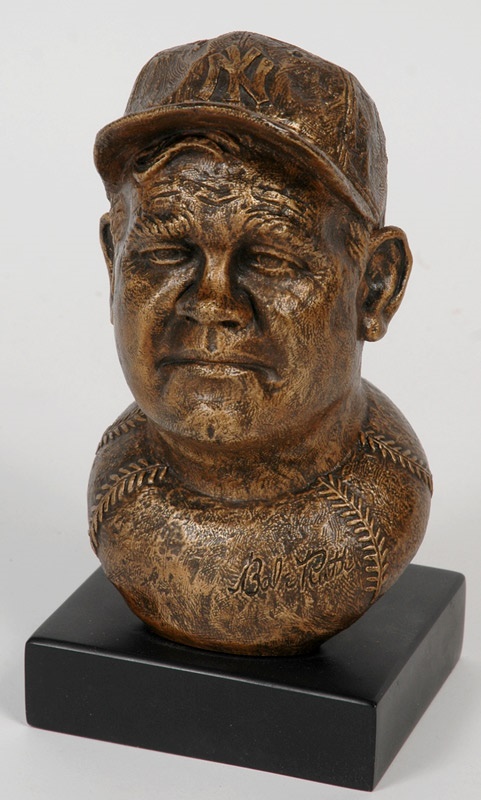 Ruth bust carries all the detail and emotional nuance deserved the baseball legend and complicated American icon. Measures 11” high. Piece’s limited edition number “415/2000” is carved below artist’s engraved signature. Includes COA.