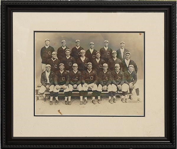 This beautiful oversized photograph of the 1918 Cincinnati Reds was taken by the noted photographed Boellinger and features baseball icon Christy Mathewson, the "Big Six," sitting front and center. The photo is mounted on board, and there is some water damage to the corners of the board, but this has been well hidden by matting and framing. The photo itself is VG with a few stains and three pin holes at the top. Photo measures approximately 13 1/2 x 10", framed to 21 1/4 x 18 1/4".
