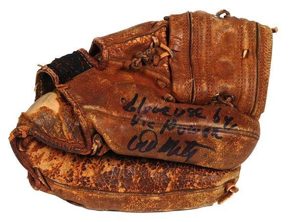 One of the old Negro Leaguers game used glove given as a gift to his heir apparent Willie Montanez. Well worn by age, this Rawlings model has been signed by Willie, “Glove Use By Vic Power.”