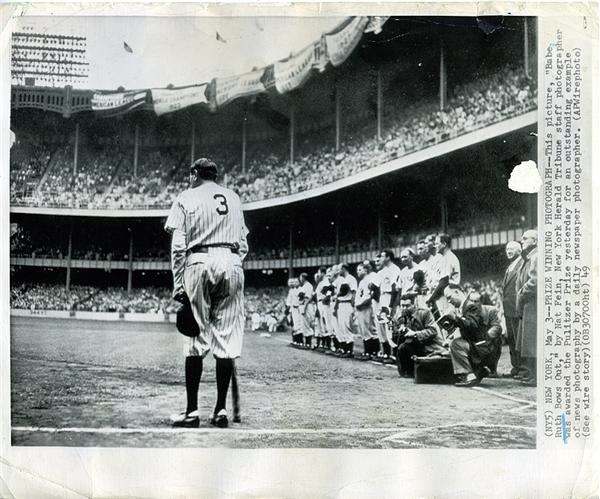 Stellar image by Nat Fein of the New York Herald Tribune is entitled, “Babe Bows Out.” Some creasing. 8 x 10”.