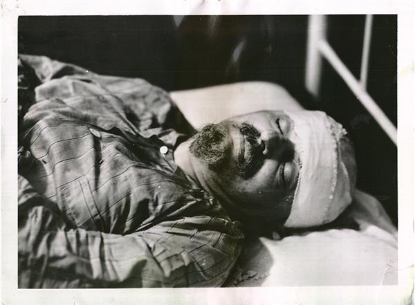 The great Soviet mind lies on the slab. Original 1940 paper caption on verso. 6 x 8”. Corner tear o/w EX.