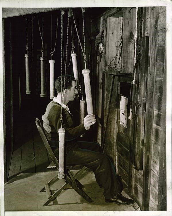 The man operating the inner workings of the Yankee Stadium scoreboard. 7 x 9”. EX-MT.