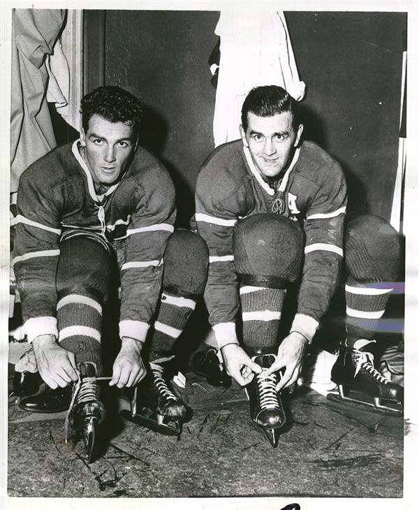 Maurice Richard and Henri Richard (The Rocket and the Pocket Rocket) lace them up. 7 x 9”. EX+.
