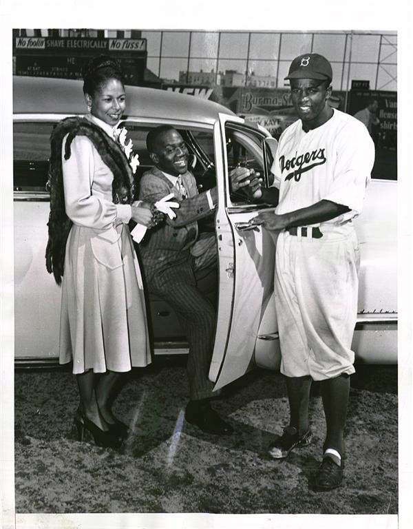Jackie Robinson Day at Ebbets Field where Jackie and Rachel are joined by Bill “Bojangles” Robinson. 7 x 9”. EX+.