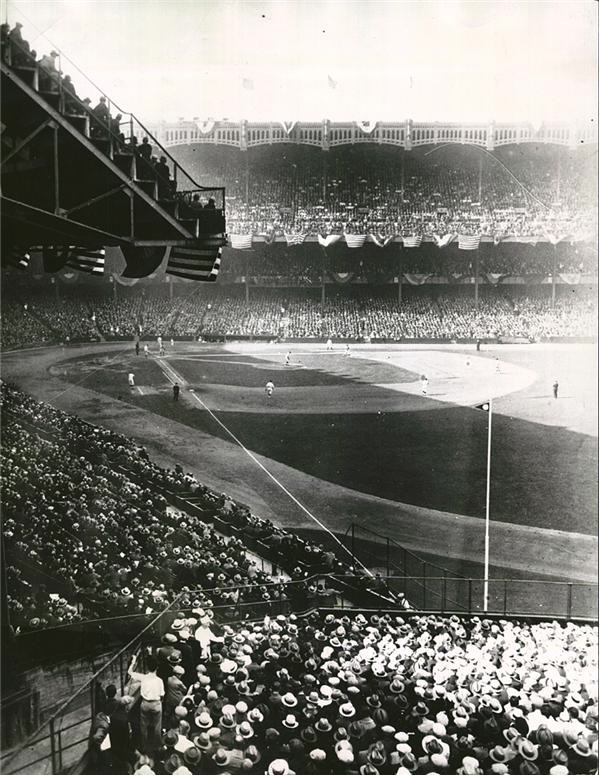 Start of Game 3 with magnificent view of Yankee Stadium. 9 x 7”. EX-MT.