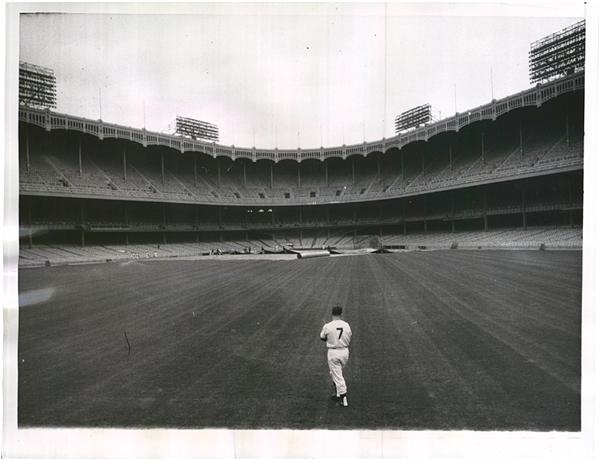 Awesome shot of Mickey in the Stadium we have never before seen. 1958 AP image with original paper caption on verso. EX-MT. 7 x 9”.