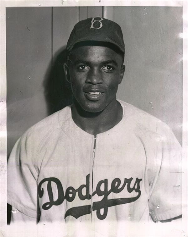Stunning portrait of Jackie after his contract was purchased by the Dodgers from Montreal. Original paper caption on this AP press photo.