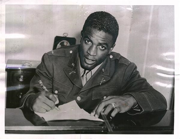 Two nice press photos of Jackie where he first made his mark in civil rights. 6 x 8” and 5 x 7”. One has small tear o/w EX.