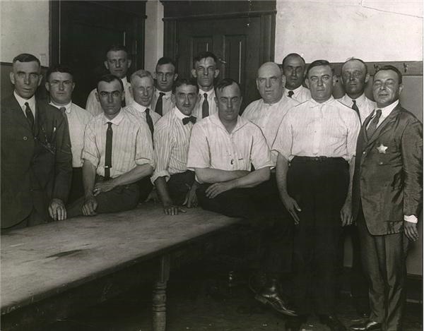 The very jury that presided over the trial of the Eight Men Out. Only known specimen of this image which was published in a Chicago newspaper (only) with original newspaper article on the verso. 8 x 10”. Repaired tear p/w EX+.