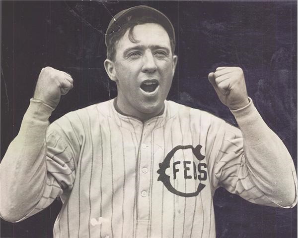 Awesome shot of Tinker rooting for his new Federal League team. Black background is inpainted for publication. Vintage image has a repaired tear o/w EX. 7 x 9”.