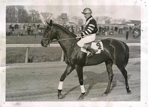 Original newspaper article states that he is the favorite in the upcoming Kentucky Derby. 6 x 8”. Pinholes o/w EX.