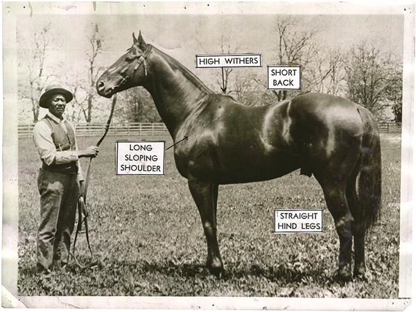 This legendary stallion has been retired to stud. Nice added publication details. Pinholes o/w EX. 6.5 x 8.5”. Original paper caption on verso.
