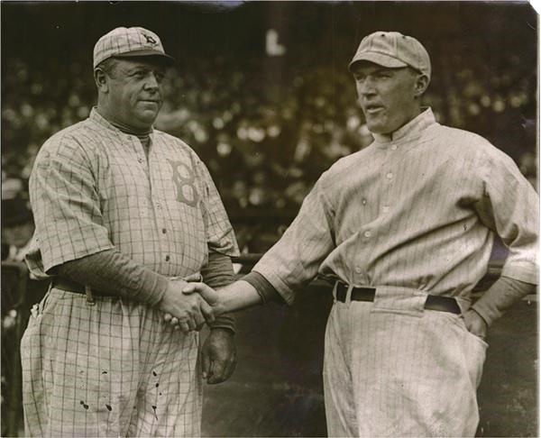 These two World Series managers shake hands before the contest. Origin al paper caption on verso. 6 x 7”. EX.