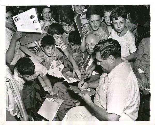 Babe Ruth signs for the young fans at the East-West All Star Baseball Game. 7 x 9”. Corner crease o/w EX-MT.