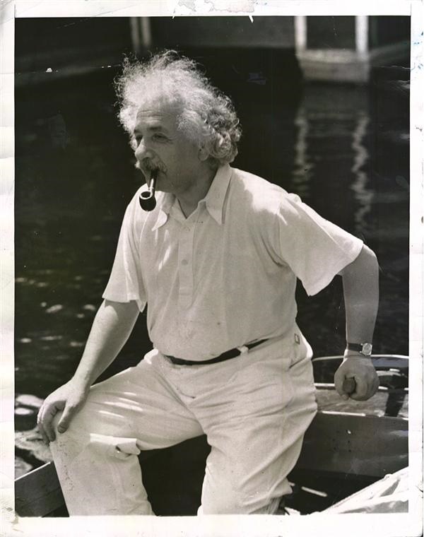 The great mind is shown is shown on his boat at Lake Saranac. 7 x 9”. VG-EX.