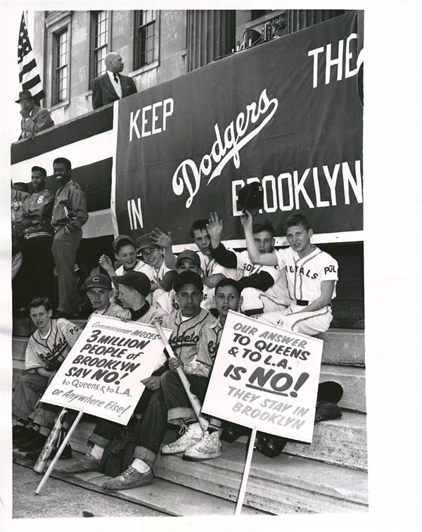 Press photo with original paper caption of a demonstration set up at Borough Hall in Brooklyn. 7 x 9”. EX-MT.