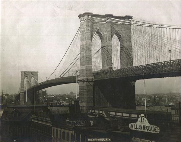 Beautiful image circa 1910 of the two boroughs linked by this technological behemoth. Photographer’s stamp on verso. 7 x 9”. EX-MT.