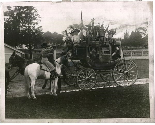 Reenactment of her Wild West stage show with the Fred Stone Family being held up. 8 x 10”. EX+