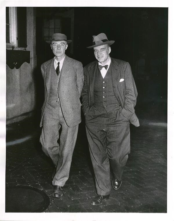 The father of the atomic bomb is show with his attorney Lloyd Garrison. Oppenheimer has been stripped of his security stays thereby derailing his government career.