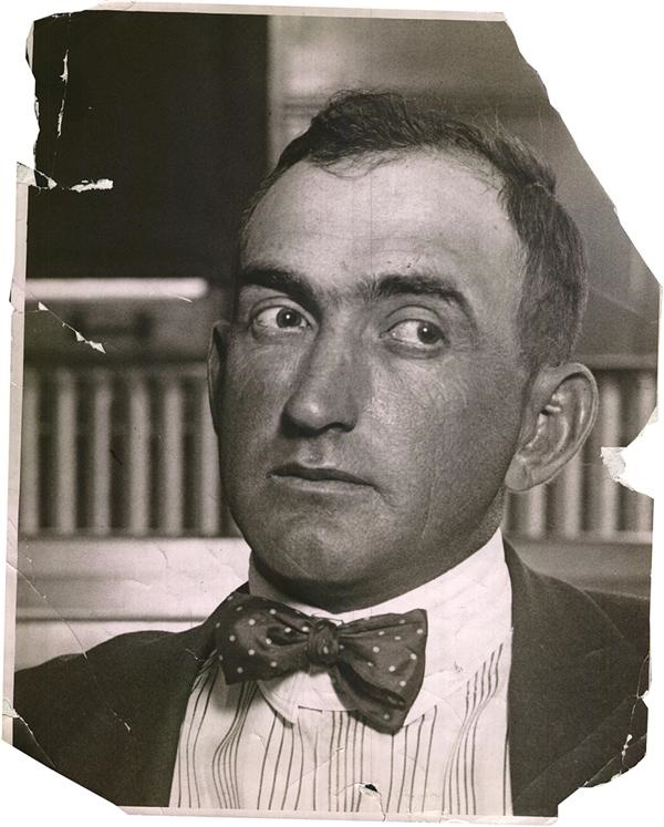 The day Shoeless Joe met with his lawyer Harry Repogele to fight non payment of his 1920 contract. We have owned the version with his lawyer but never this one of just Shoeless Joe. Significant paper loss but perfect contrast. September 29, 1920 date stamp on the verso.