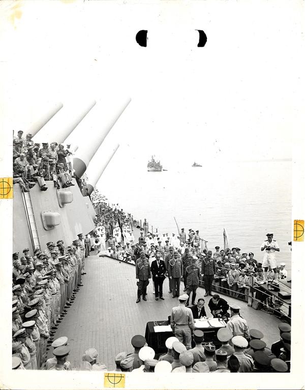 Lot # 1302: Shigemitsu Signs Japanese Surrender Aboard U.S.S. Missouri (1945)