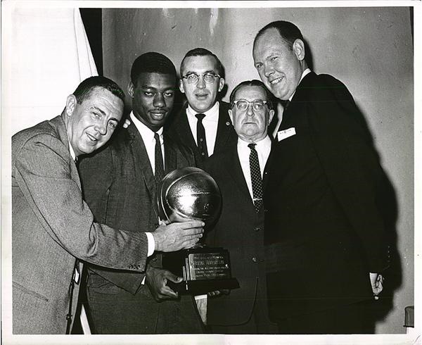 The finest known collection of Big O images bar none. Dates from the 1950s-60s. All are from High School, the University of Cincinnati and the Cincinnati Royals. There is even stuff from his high school days believe it or not. Includes fabulous rookie material, his wedding, in the Army, and all the best of his days with the Royals. There are some from his holdout period with him missing from the starters and his empty jersey there instead! This collection is completely unpicked and truly unbelievable. Worthy of the Basketball Hall of Fame or Oscar’s family. Many with original newspaper articles and photographer’s stamps affixed to the versos. Overall EX+. Most 8x10”.