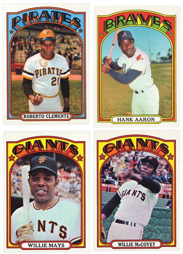 Set features lots of great stars finishing up their careers from the ‘60s and other stars just beginning their career in the ‘70s. Set appears to be made fresh from vending or wax packs. Grades a consistent NRMT+ with many higher-grade examples throughout. Key cards grade as follows: #37 Yaz (NRMT+), 49 Mays (NRMT), 50 Mays In-Action (NM-MT), 79 Fisk rookie (NRMT+OC), 270 Palmer (NM-MT), 299 Aaron (NM-MT), 309 Clemente (NM-MT), 420 Carlton (NRMT+), 433 Bench (NRMT+), 435 Jackson (NRMT+), 445 Seaver (NRMT+), 559 Rose (NRMT+), 560 Rose In-Action (NRMT+), 595 Ryan (NRMT+), 695 Carew (NRMT+), 686 Garvey (NRMT+), 751 Carlton (NM-MT, o/c), 752 Morgan (NRMT+), and 754 Frank Robinson (NRMT+). Beautiful set displayed in a binder and pages. All cards have a fresh gloss to them. Nice centering on more than 75% of these cards. Truly investment grade quality.
