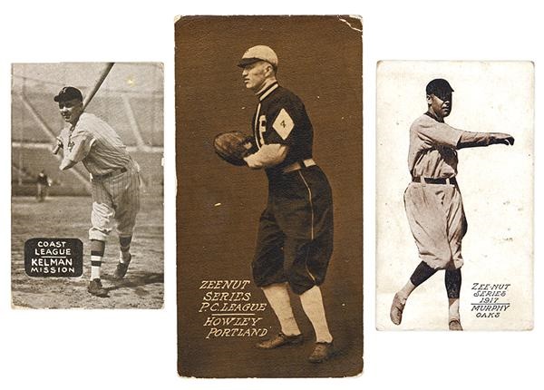 This collection of vintage Zeenut Baseball cards features a card from each year from 1911 through 1931. Size varies, as well as condition, with cards rating from FAIR to VG/EX. All poses are full-body shots in uniform, most situated on blank backgrounds. A wonderful look into early twentieth-century baseball. Please call for list of players.