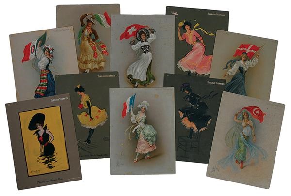 This complete set of twenty-five (25) Turkish Trophies trading cards, from 1902, was a reward for trading in 100 coupons from the purchase of Turkish Trophies tobacco. These great vintage cards are in FAIR to GOOD condition, with a few missing corners, creases, and pinholes in the set. Each features a beautiful, full color drawing. On the reverse of the cards, information about Turkish Trophies tobacco is written, along with 100 coupon offer.