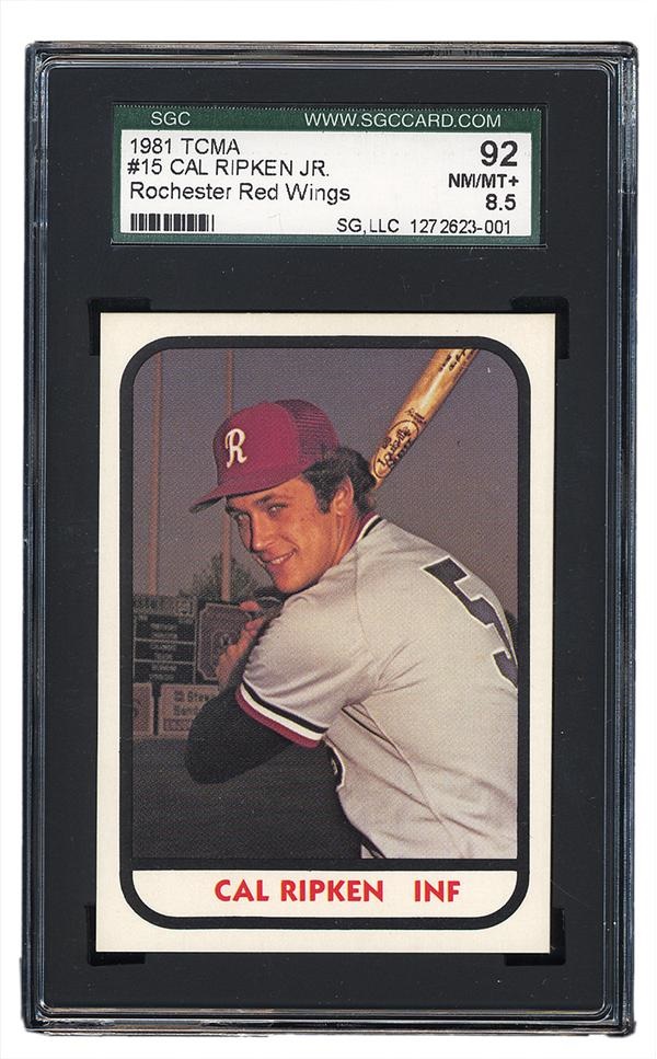 Cal Ripken Jr. is the only man to ever break Lou Gehrig's record for consecutive games played, toughing it out through injuries to become considered one of the most reliable players in Major League Baseball. This card, from the Iron Man's first year in the Major Leagues, actually portrays him on his AAA squad, the Rochester Red Wings. A very early example of a Ripken card.