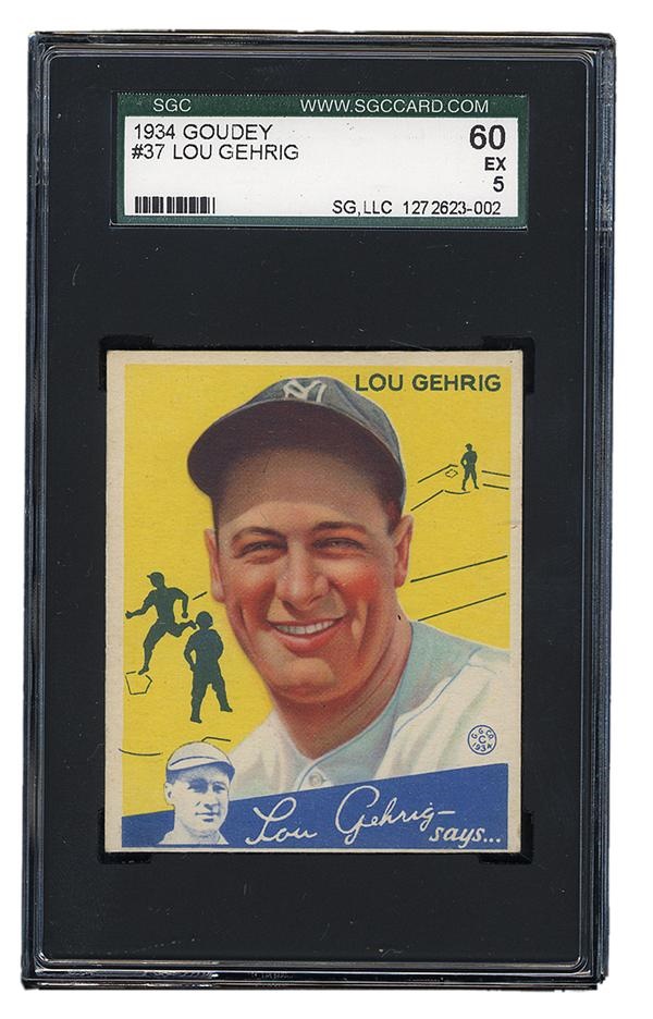 One of the most reliable and sportsmanlike players in baseball, Lou Gehrig loved the game and it loved him back. This card shows great, bright colors, nice corners, and no creases. Listed as #37, the back of this card features a quote from Gehrig and a printed-on faux signature, all in green ink.