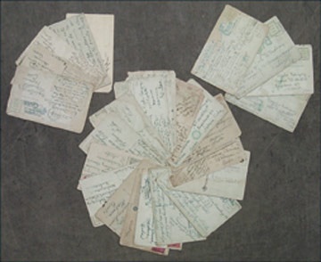 Written by the N.Y. Cuban players some of the top Negro League players of the era: Isidro Fabre, Oscar Levis (a few), Carlos Blanco, Rodolfo Fernandez, Pelayo Chacon (a few), Napoleon Heredia, Marsan, Mantecado, Inares, Sarda and Alex Pompez the team owner. From the 1920s (23), 1930s (9), 1940s (2), they are all addressed to Rogelio Rodriguez the newspaperman (Diario Avance) who was in charge of sending Cuban players to the Negro Leagues. Many are from the 1922-24 apex of Cuban baseball. They are in Spanish postmarked from Newark, Washington, great Negro League cities (NY, Philly, Baltimore, Buffalo, Chicago). They have great baseball content including scores of Negro League games, game in Philadelphia, 1922 Cuban Stars, 1922 Baltimore Back Sox, and much more. The postcards themselves are travel postcards and NY World's Fair. GD-VG.