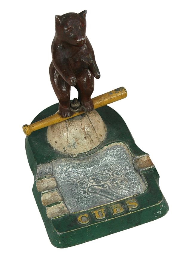 Brilliant cast metal ashtray dates from this forlorn era. Superb original paint and amazing condition EX-MT. 6” tall, and a magnificent figural.