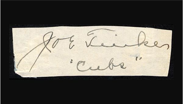 Reads “Joe Tinker Cubs.” Cut a bit close but ink is nice.