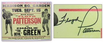 Charlie "The Devil" Green is described as an "Exciting Greenwich Village (NYC) Puncher," but the former Heavyweight Champ sat him down in the tenth round with a K.O. Card stock poster is EX with stronger appearance; sharpie signature is NRMT.