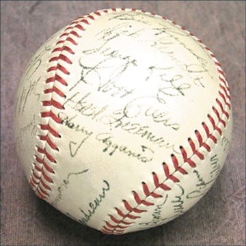 Twenty-nine black fountain pen autographs on Harridge OAL. Best part of all is cult hero Harry Agganis signed this ball in spring training of 1953. Early exemplar of The Golden Greek's autograph. Ted Williams is not on the ball, as he was still in Korea. Others: Lou Boudreau (Mgr.), George Kell, Mel Parnell, Harold Brown, Clyde Vollmer, Johnny Lipon, Bill Consolo, Gene Stephens, Willard Nixon, Milt Bolling, Sid Hudson, Hoot Evers, Dick Gernert, Bill Kennedy, Ken Holcombe, Hersh Freeman, Gus Niarhos, Ike Delock, Ted Lepcio, Al Zarilla, John Merson, Haywood Sullivan, Russ Kemmerer, George Susce, Oscar Melillo & Paul Schreiber. Both Lipon and Vollmer were traded out of Boston during the 1953 season. Spectacular NRMT-MT condition. There are no flaws, but it's nearly impossible to grade a baseball from the 1950's Mint.