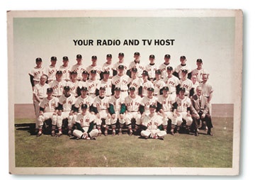 Large 24x35" cardboard sign is a breathtaking team photo shot of the last Bosox squad to include Teddy Ballgame in its lineup. Text at top reads, "Your Radio and TV Host." Light foxing and edge wear with writing on the back. Otherwise very nice.(24x35").