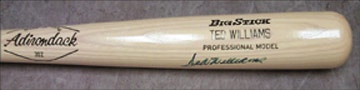 The single signed Ted Williams bat has become as much a staple of the industry as the Babe Ruth single signed ball. And you won't find any better than this Adirondack Big Stick with a perfect blue sharpie signature from the Kid.