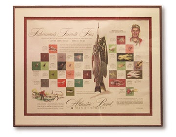 If baseball was the Splinter's first love, fishing was a close second. Wonderfully colorful poster was created to boast the products of "Atlantic Bond" fine papers. Matted and framed to museum quality.