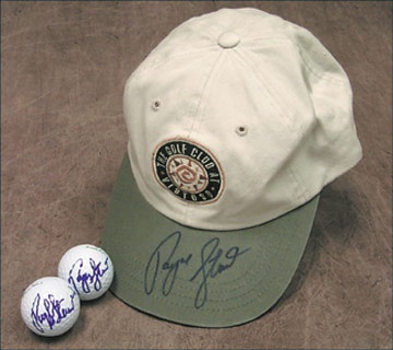 Perfect blue sharpie signatures are from the man who died so tragically in one of the most bizarre plane crashes in recent history. Cap is from "The Golf Club at Vistoso;" ball is a number "2 Strata-Flite II.”